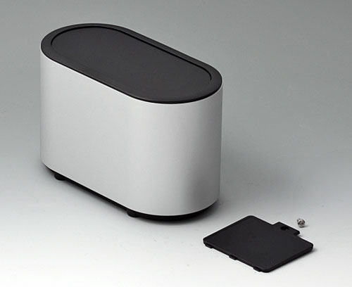 SYNERGY R100 4-part enclosure for many different applications. Sturdy frame made of aluminium, glass bead-blasted and anodised. Plastic parts made of ASA+PC-FR with high UV protection and high flame resistance. Attachment domes for PCBs and components in the top and bottom parts. Top part with recessed surface to protect the membrane keyboard. Bottom part with opening and screw-down cover: practical for the use of a battery compartment or for access to the interior, e.g. for a memory card or batteries that are mounted directly on the PCB. Battery compartment kit 2 x AA with contact springs, battery clips, button cell holder and wall mounting option as accessories.