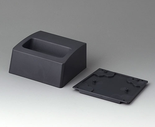 DATEC-COMPACT S 2-part compact hand-held enclosure with an ergonomic, robust design. Secure grip through finger recess in the bottom part. Recessed user area to protect the operating elements. Attachment domes for PCBs and components in the top and bottom parts.