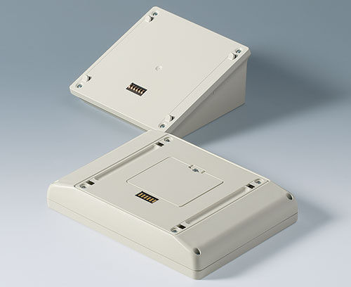 painel de operação com inclinação de 20° quando montado verticalmente ou horizontalmente; fixação escondida do parafuso; a base ergonomicamente inclinada oferece espaço maior para conectores e prensa cabos; pés de borracha fornecidos com o estojo asseguram o posicionamento da mesa de trabalho antiderrapante