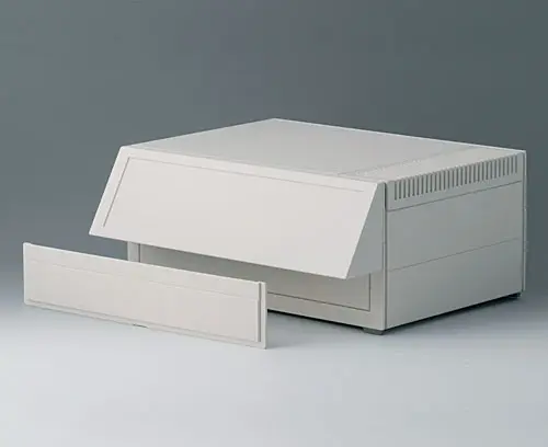 MEDITEC D 220, without handle bar Complete case. Ideally suited to accommodate double-Eurocards 233.4 x 220 mm. Two identical shells are joined together so that they overlap. Side trims easily fitted. Non-slipping case feet are fixed by screws to ensure a firm and stable support.