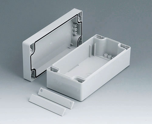 ROBUST-BOX WIDTH 80, Vers. II Robust plastic enclosure, ideal for electrical and electronic applications. Case shells either usable as top or base part. Each case part contains threads and fixing towers. Screw fixing outside of the sealing area. Recess of approx. 0.8 mm for use of membrane keyboards.