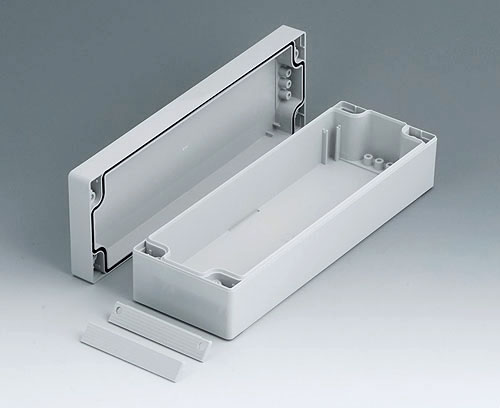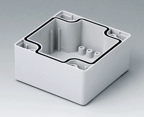 ROBUST-BOX WIDTH 80, Vers. I Robust plastic enclosure, ideal for electrical and electronic applications. Case shells either usable as top or base part. Each case part contains threads and fixing towers. Screw fixing outside of the sealing area. Recess of approx. 0.8 mm for use of membrane keyboards.