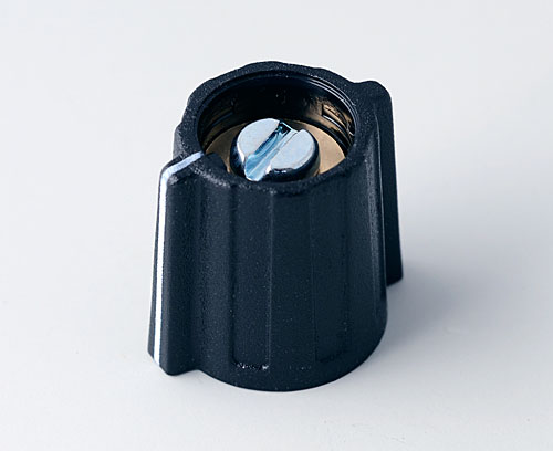 Ручка с крылышками 13,5, с риской Для установки на вал вращательного потенциометра с круглым сечением в соответствии со стандартом DIN 41591. Фиксация на вале с помощью цанговой прижимной втулки. Центральное отверстие с фаской. Белая риска.
