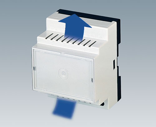 Откидная крышка округлой формы для корпуса RAILTEC BP, M22. Петли крышки можно размещать с обеих сторон корпуса. Защищает электронику, соединители и/или элементы управления и визуализации.