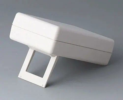 HAND-HELD-BOX M, исп. I Небольшой ручной корпус с великолепным дизайном. Углублённая область для плёночной клавиатуры или других элементов управления. Готовое окно для дисплея. Батарейный отсек с доступом снаружи. Место спереди для размещения разъёмов.