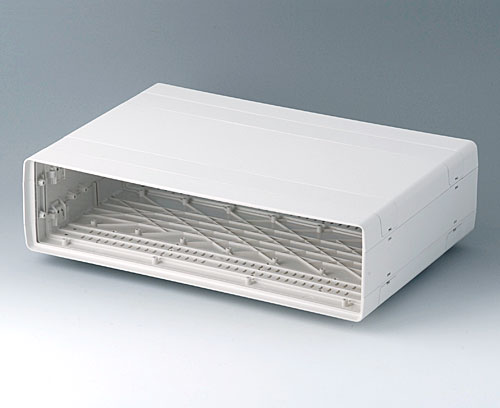 ROBUST-BOX с шириной 240, исп. I Обе части корпуса могут использоваться в качестве нижней или верхней. В обеих частях корпуса есть сборочные резьбовые колодцы и монтажные бобышки. Сборочные колодцы расположены вне зоны герметизации. На обеих частях корпуса имеется углублённая область ок. 0,8 мм для плёночной клавиатуры.