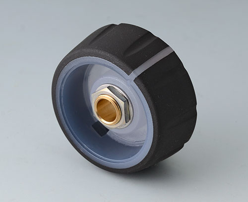 CONTROL-KNOB 36 Регулировочная ручка с инновационным дизайном, состоящая из двух частей. Внутренняя часть из поликарбоната, наружная часть из эластичного материала ТПЭ.