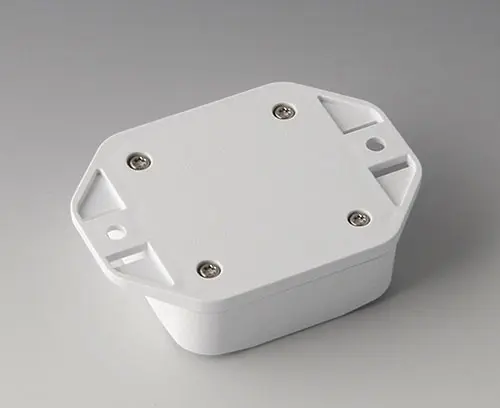 Корпус, состоящий из верхней и нижней частей, с высокой верхней частью. Нижняя часть с ушками для монтажа на стену, рельс или трубу. Прочная конструкция с надежным соединением "шпунт-паз". Сборка с помощью винтов из нержавеющей стали со шлицем Torx. Опорные стойки для крепления плат и компонентов в верхней и нижней частях. Крепление осуществляется методом оплавления опорной стойки.
