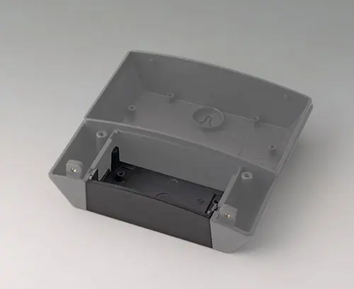 NET-BOX 140, исп. I Корпус, состоящий из трёх частей, со скрытыми сборочными винтами. Современное сочетание светло-серого и тёмно-серого цветов. 4 монтажные бобышки в нижней части и в крышке основного отсека. Может применяться вне помещений благодаря высококачественной пластмассе АСА+ПК-ОС.