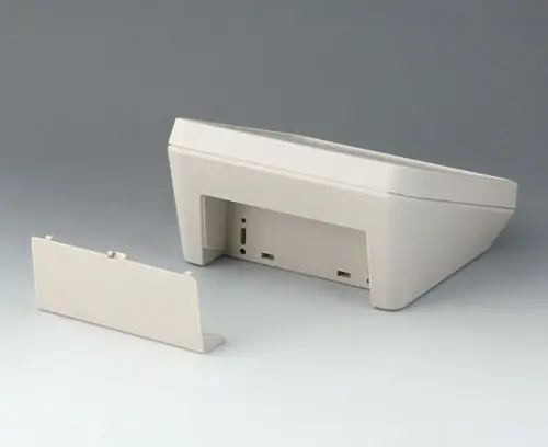 Современный пластмассовый корпус, состоящий из трёх частей, с эргономичным наклоном рабочей области. В комплект входит защёлкивающаяся крышка для закрывания углубления с задней стороны корпуса. Монтажные бобышки для крепления плат и компонентов в верхней и нижней части. Отдельно поставляются настенный держатель и уплотнительная прокладка (для увеличения степени защиты до IP 65). Скрытые сборочные шурупы из нержавеющей стали со шлицем Torx. Благодаря высококачественному материалу и прочной конструкции может также использоваться вне помещений.
