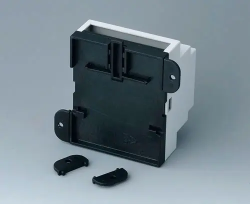 RAILTEC B, 2 модуля, исп. I Корпус стандарта DIN 43880 (типоразмер 1). Для установки на 35-миллиметровую DIN-рейку. В нижней части имеются монтажные бобышки для крепления печатной платы. Верхняя часть в исполнении с вентиляционными отверстиями. В верхней части имеются вертикальные и горизонтальные направляющие для установки плат.