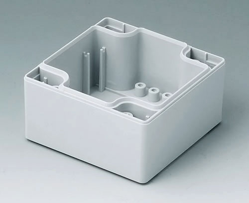 ROBUST-BOX с шириной 240, исп. I Обе части корпуса могут использоваться в качестве нижней или верхней. В обеих частях корпуса есть сборочные резьбовые колодцы и монтажные бобышки. Сборочные колодцы расположены вне зоны герметизации. На обеих частях корпуса имеется углублённая область ок. 0,8 мм для плёночной клавиатуры.