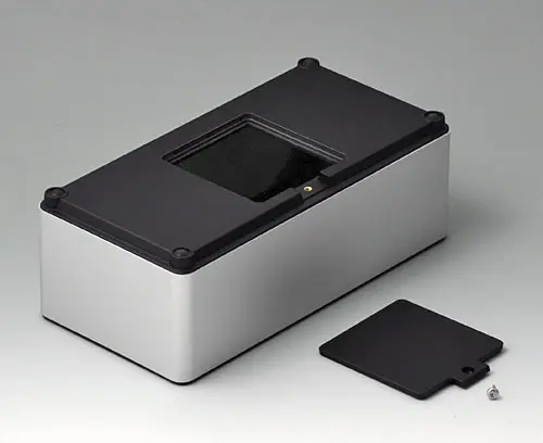 Универсальный корпус, состоящий из четырёх частей. Прочная рамка из анодированного алюминиевого профиля. Крышки из пластмассового сплава АСА+ПК-ОС с хорошей стойкостью к ультрафиолету и высокой огнестойкостью. Монтажные бобышки для плат на обеих крышках. Углублённая область на верхней крышке для защиты плёночной клавиатуры. Нижняя крышка с отверстием с крышкой на винте; отверстие может использоваться как для размещения батарейного отсека, так и для доступа внутрь корпуса, например к карте памяти или к батарейкам, расположенным непосредственно на плате. Дополнительно поставляется батарейный отсек с контактами на 4 батарейки АА, батарейные контакты для монтажа на плату, кроватки для таблеточных батареек и ушко для настенного монтажа.