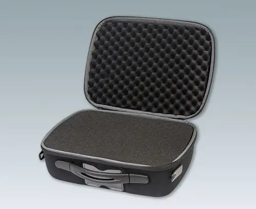 Reliable and fashionable transportation solution with a carrying handle as well as 2 eyelets for using the shoulder strap (accessory). The carry case can be fitted with your logo or nameplate for your company branding (logo window, zipper).