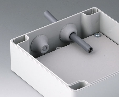 ROBUST-BOX WIDTH 120, Vers, II Robust plastic enclosure, ideal for electrical and electronic applications. Case shells either usable as top or base part. Each case part contains threads and fixing towers. Screw fixing outside of the sealing area. Recess of approx. 0.8 mm for use of membrane keyboards.