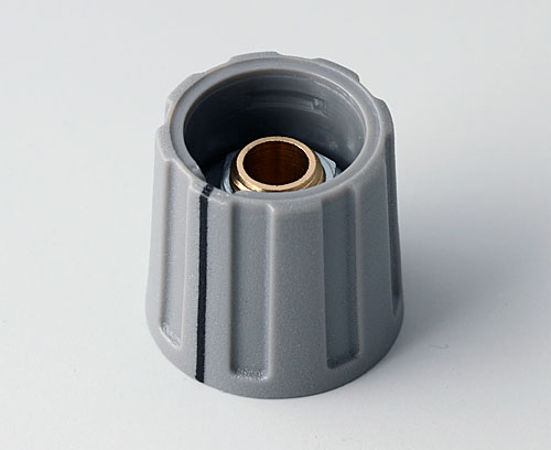 ROUND KNOB 16, without line Suitable for rotary potentiometer with round shaft ends according to DIN 41591. Collet system for convenient knob assembly from the front and simple adjustment (with adjustment key - sep. article). Center hole with chamfer.