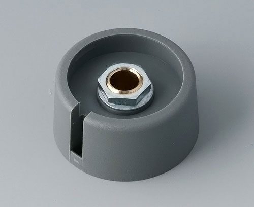 TOP-KNOBS 31 Suitable for rotary potentiometer with round shaft ends according to DIN 41591. Lateral screw fixing by hex-socket set screw (1.5 mm) and cup point.