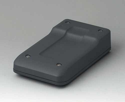 2-part compact hand-held enclosure with sealing and with an ergonomic, robust design. Secure grip through finger recess in the bottom part. Recessed user area to protect the operating elements. Attachment domes for PCBs and components in the top and bottom parts.