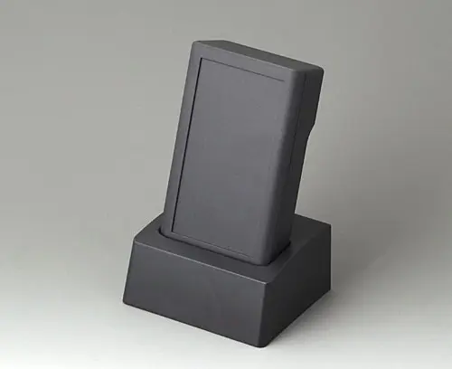 Base for the practical storage of DATEC-COMPACT S, with and without battery compartment. Ideal for charging mobile devices and transmitting data. Domes for mounting PCBs and components. Recesses for spring contacts (accessories).