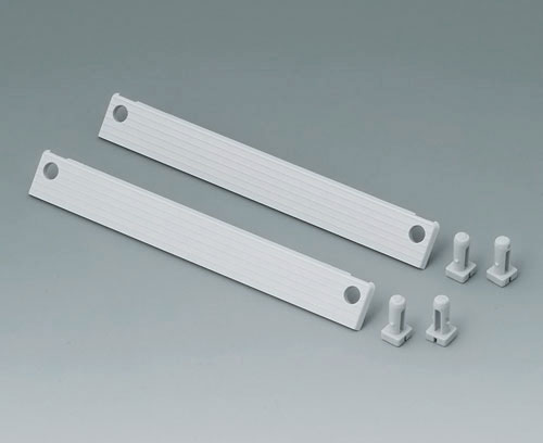 Cover strips 120 Optional supplies to the light grey coloured standard versions. Simply clip into top or base. Pair of cover strips with 2 holes to put in rubber feet or security plug.