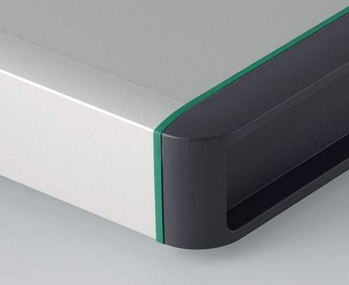Horizontal guides and screw channels provided inside the case for fitting PCBs. Flat areas for easy installation of interfaces. Recessed area in the top for the protection of displays, membrane keypads and operating elements. Side covers with recessed area for protecting cables and connectors.