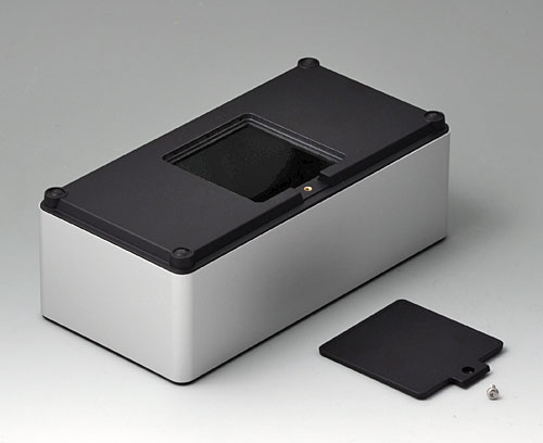 4-part enclosure for many different applications. Sturdy frame made of aluminium, glass bead-blasted and anodised. Plastic parts made of ASA+PC-FR with high UV protection and high flame resistance. Attachment domes for PCBs and components in the top and bottom parts. Top part with recessed surface to protect the membrane keyboard. Bottom part with opening and screw-down cover: practical for the use of a battery compartment or for access to the interior, e.g. for a memory card or batteries that are mounted directly on the PCB. Battery compartment kit 4 x AA with contact springs, battery clips, button cell holder and wall mounting option as accessories.